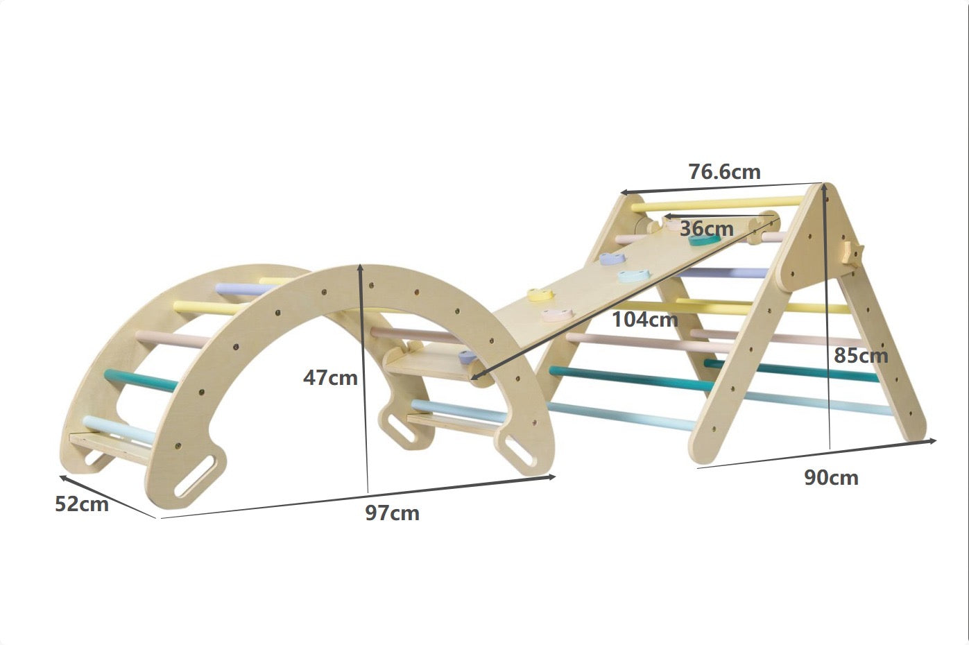 🌈 Pastel Pikler Climbing Set – Triangle, Arch & Ramp